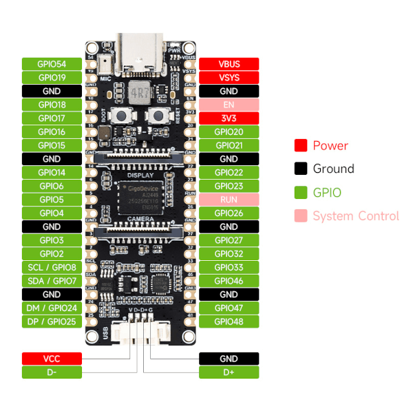 Grâce à son processeur RISC-V double cœur à 400 MHz, ses interfaces MIPI-CSI / MIPI-DSI, son support USB 2.0 OTG High-Speed et sa mémoire étendue, l’ESP32-P4-Pico est idéale pour la vision artificielle, l’edge computing et les projets interactifs modernes.